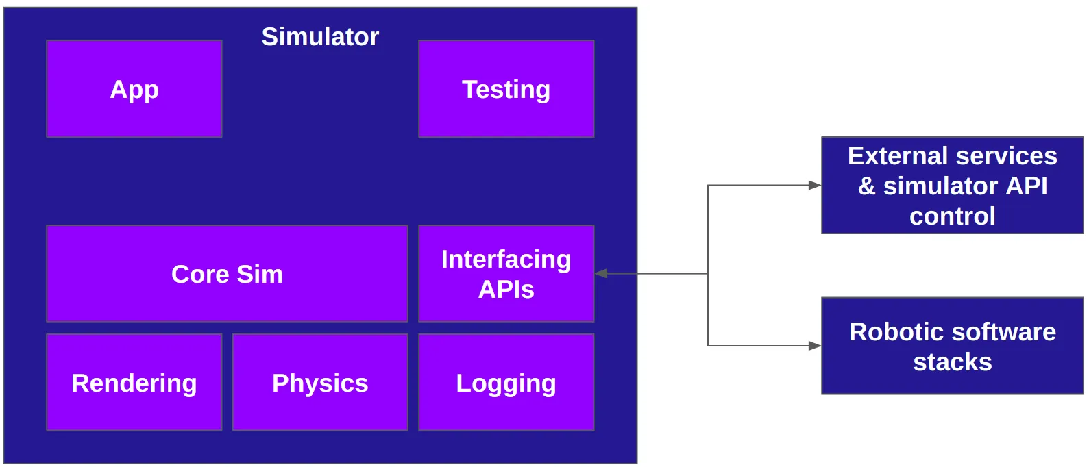 - Simulator App: Manages and controls the simulation, potentially providing a user interface.